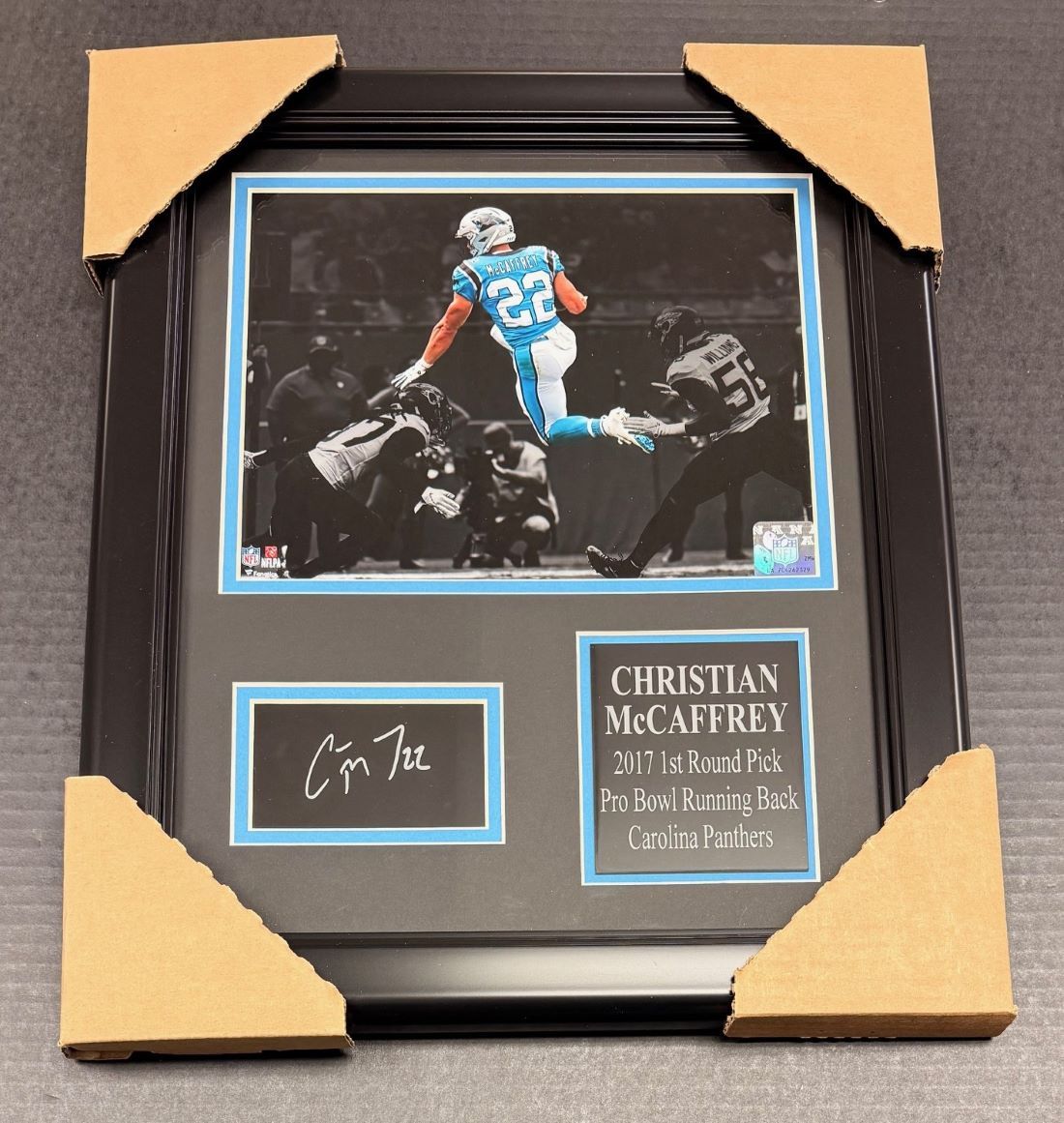 > CHRISTIAN MCCAFFREY PANTHERS LASER ENGRAVED AUTOGRAPHED PLATE Framed 8x10 Photo